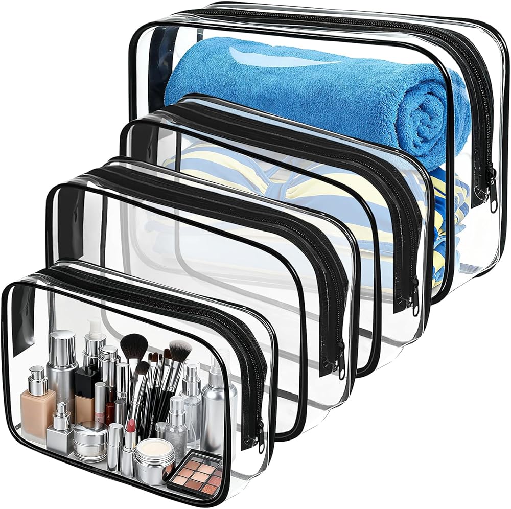 Clear makeup travel bags are great for travel, camp, bathroom, pools, beaches, etc., to organize cosmetics, toiletries, snacks, diapers, travel bottles, or other daily essentials