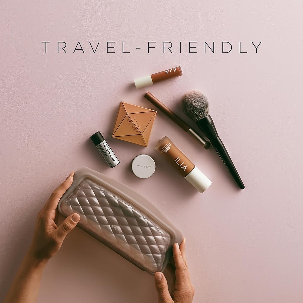 Stasher Reusable Silicone Travel Makeup Bag, Storage Bag Organizer, Dishwasher Safe, Leak-free, Beauty Essentials, Taupe