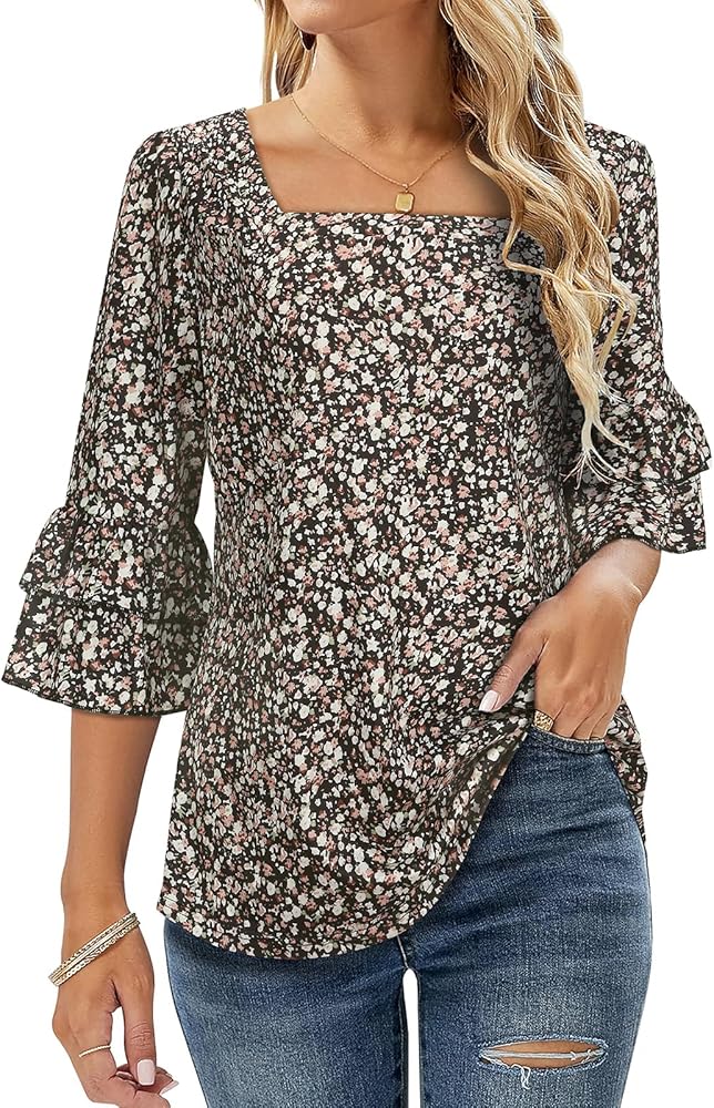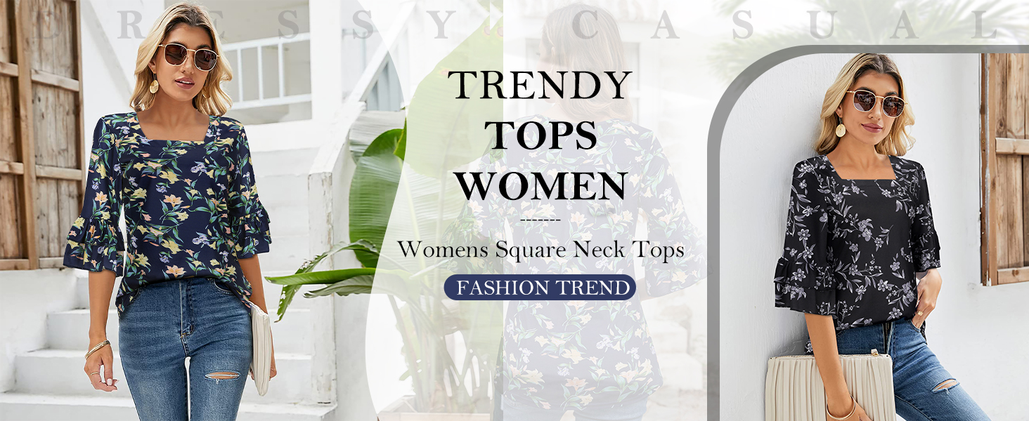 Unique Design: Elegant square neck & Bell sleeve, this fationable business blouse show your charming appearance and feminine curves perfectly. You can tuck your shirt into your pants or tie it in a knot for a casual-chic look.