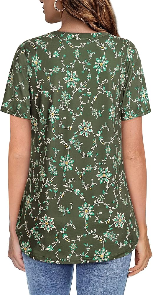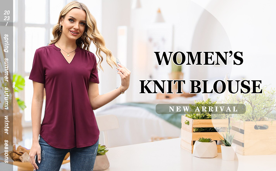 Premium Quality Knit Material-This short sleeve tunic blouses for women is made of premium soft and elastic knitting textile. Stretchy Top is silky smooth, comfortable, breathable and skin friendly, wrinkle-free, not see through