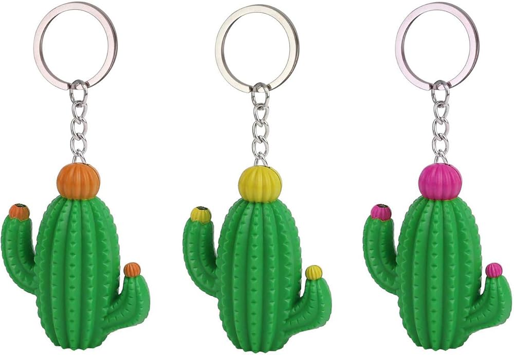 3 x Cute Cactus Design Key Chain(includes pink, brown and yellow)