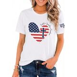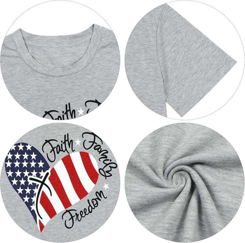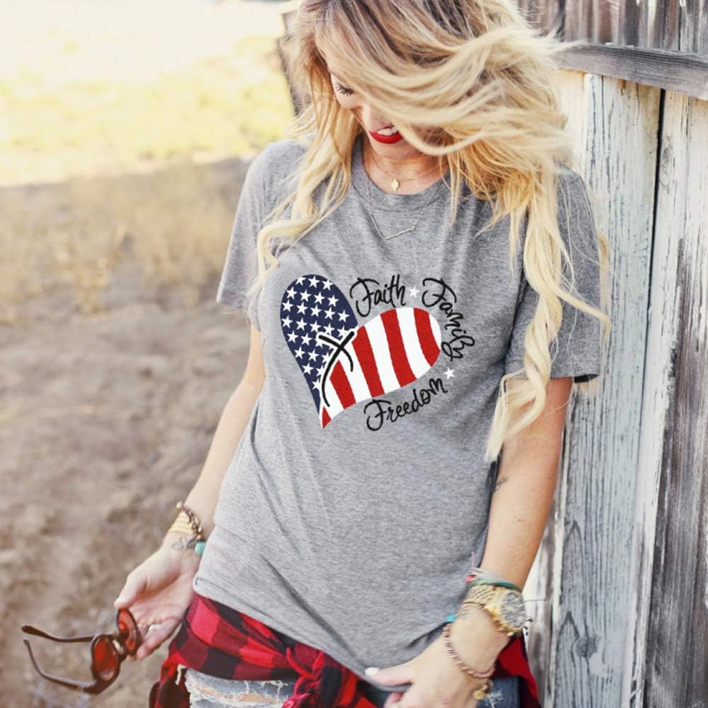 Feature: Faith family freedom! Celebrating American Independence Day, insist on freedom of faith and family. American flag print shirt, short sleeve, classic crewneck, casual shirt fit for women. For no one funny shirt in regret? Show your attitude and be a cool girl!