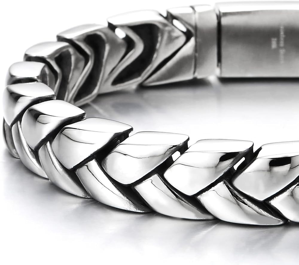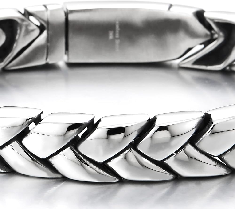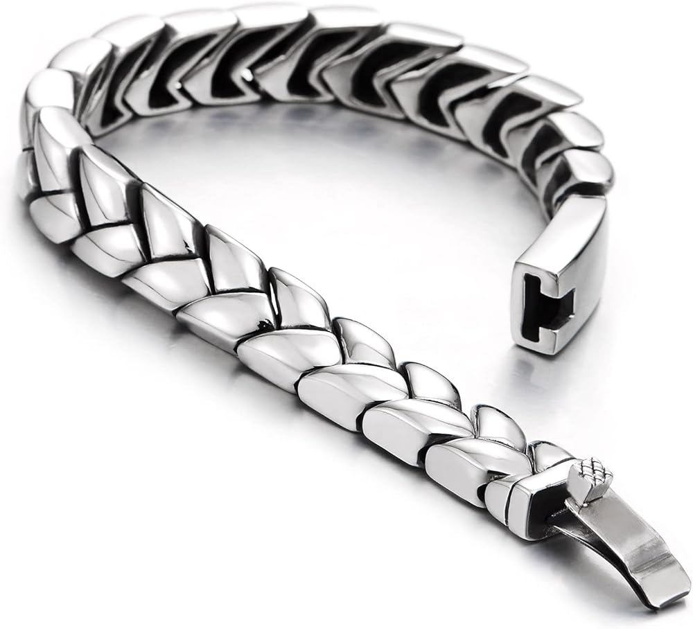COOLSTEELANDBEYOND Mens Exquisite Steel Irregular Geometric Link Chain Bracelet with Spring Box Clasp High Polished