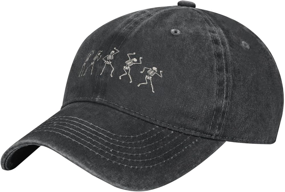 Dancing Skeletons Funny Distressed Adjustable Washed Denim Mens Dad Trucker Hat Baseball Ball Cap for Men