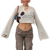Occasion: Women y2k long sleeve crop top crochet knit colorful hollow out pullover vintage summer fall sweater,Fashion knit top suitable for spring, summer, fall and winter, cocktail, photo shoot, street, sport, shopping, vacation, music festival, carnival, dinner, work, park, picnic, ,shopping, photo shoot, school. Preppy clothes, preppy tops for teen girls, or other activities.