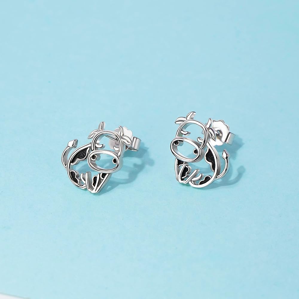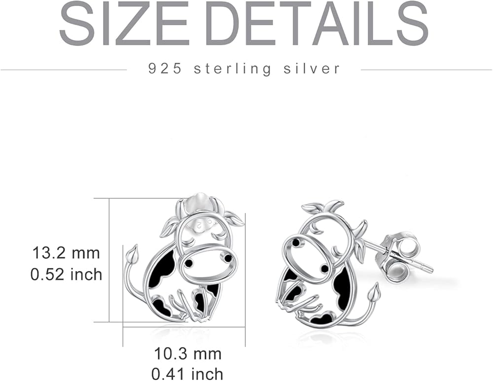 Material: Cow Earrings is made of high quality 925 sterling silver, high polish finishing and won't turn dark. You often wear it also contributes to good health.