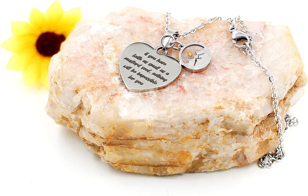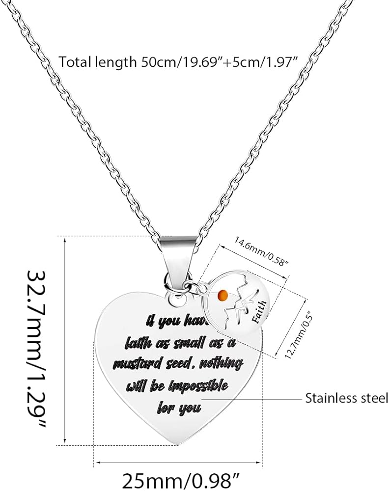 You are looking at unique womens stainless steel heart neckalce, suitable for any occassions.This necklace featured with small Mustard Seed and heart pendant. Gift bag will be included.