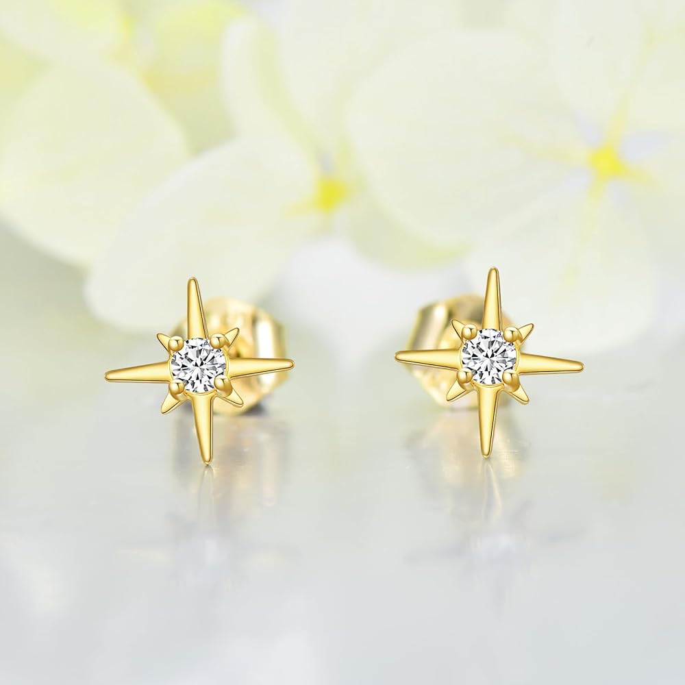[Star Earrings] Simple star stud earrings design, embellished with moissanite in the middle, which is light and shiny. It can easily add elegance to your outfit. These simple star stud earrings are perfect for everyday wear or any occasion.