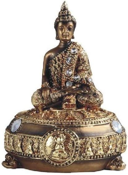 GSC 88204 5 Inch Thai Buddha Figurine Trinket Box, Gold Color, Brown