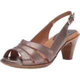 Upper available in various materials and features a sling-back strap with an adjustable buckle closure.