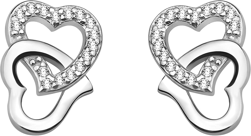ELEGANT & TIMELESS - Fashionable silver earrings with Zirconia stone - heart motif - suitable for any occasion and versatile combinations