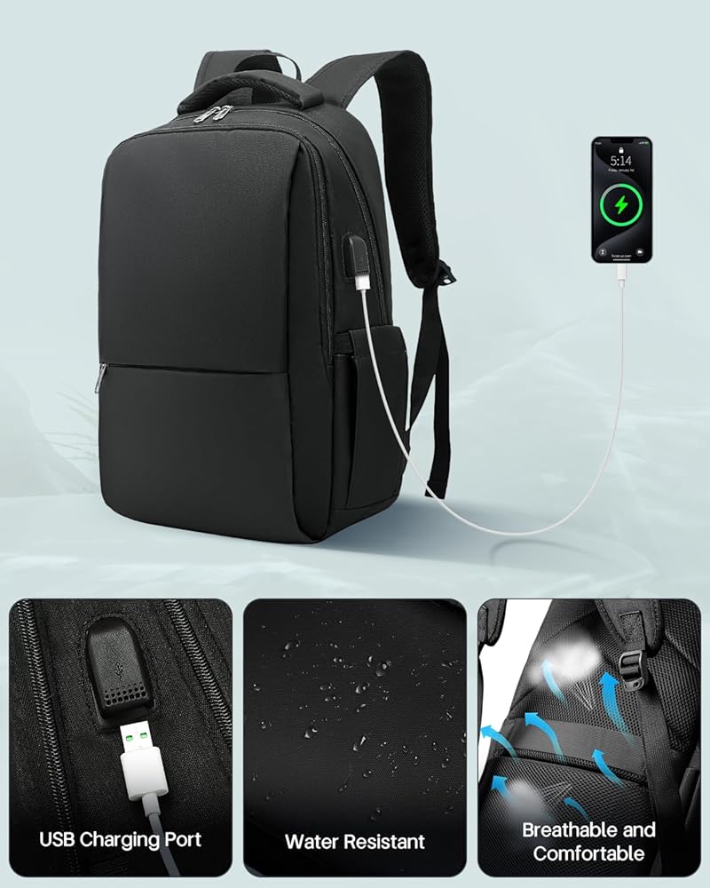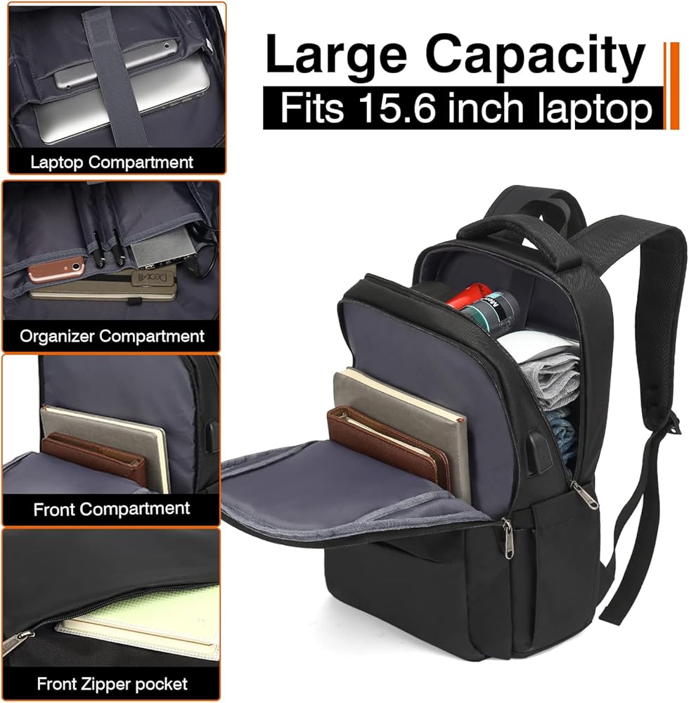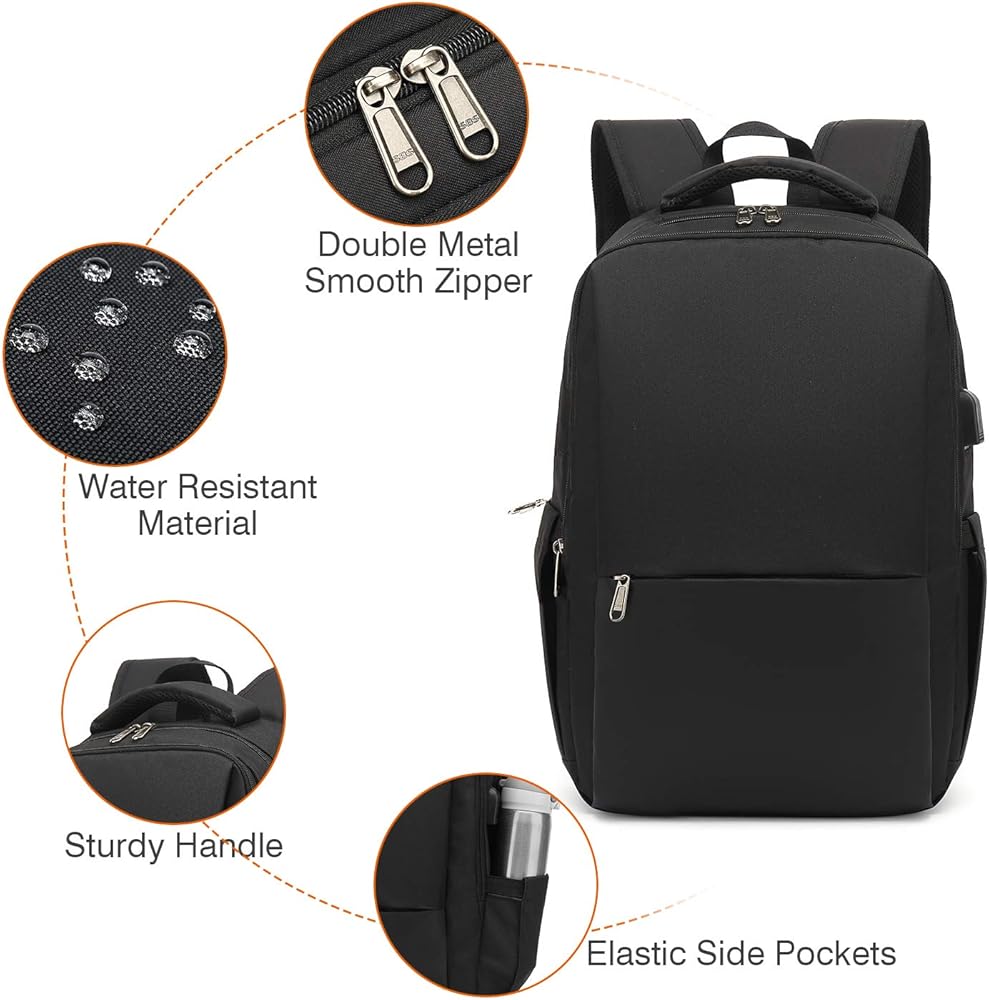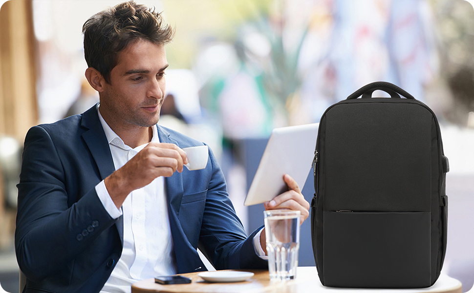 Multiple Compartments & Capacity - The work backpack contains 3 main zip pockets and multiple compartments. You can place your laptop, pad, travel goods, notebook, pen, etc. Elastic pockets on the side allow you to place water bottles and umbrellas of different sizes. Fits 15.6-inch laptop bag.
