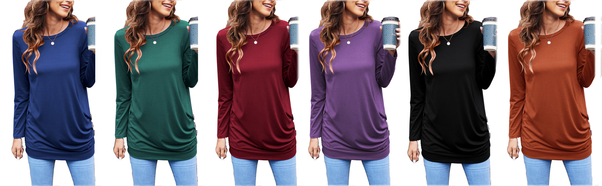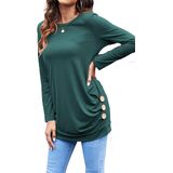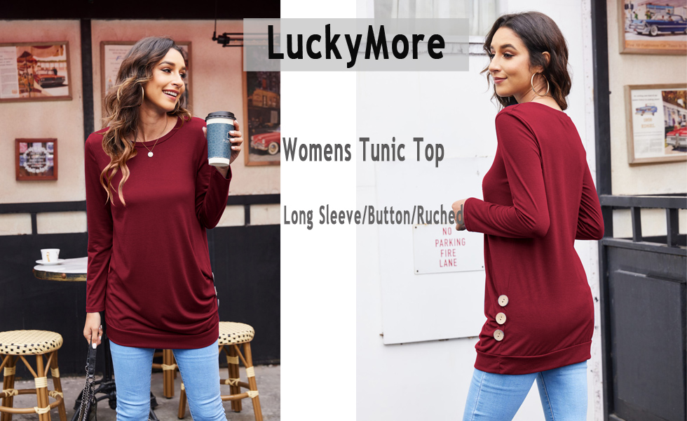Long sleeve tunic tops to wear with leggings, tunic long length shirts with side buttons, long sleeve t shirts , ruched, stretchy, loose fitting dressy tops. long tunic tops to cover belly /hide tummy.