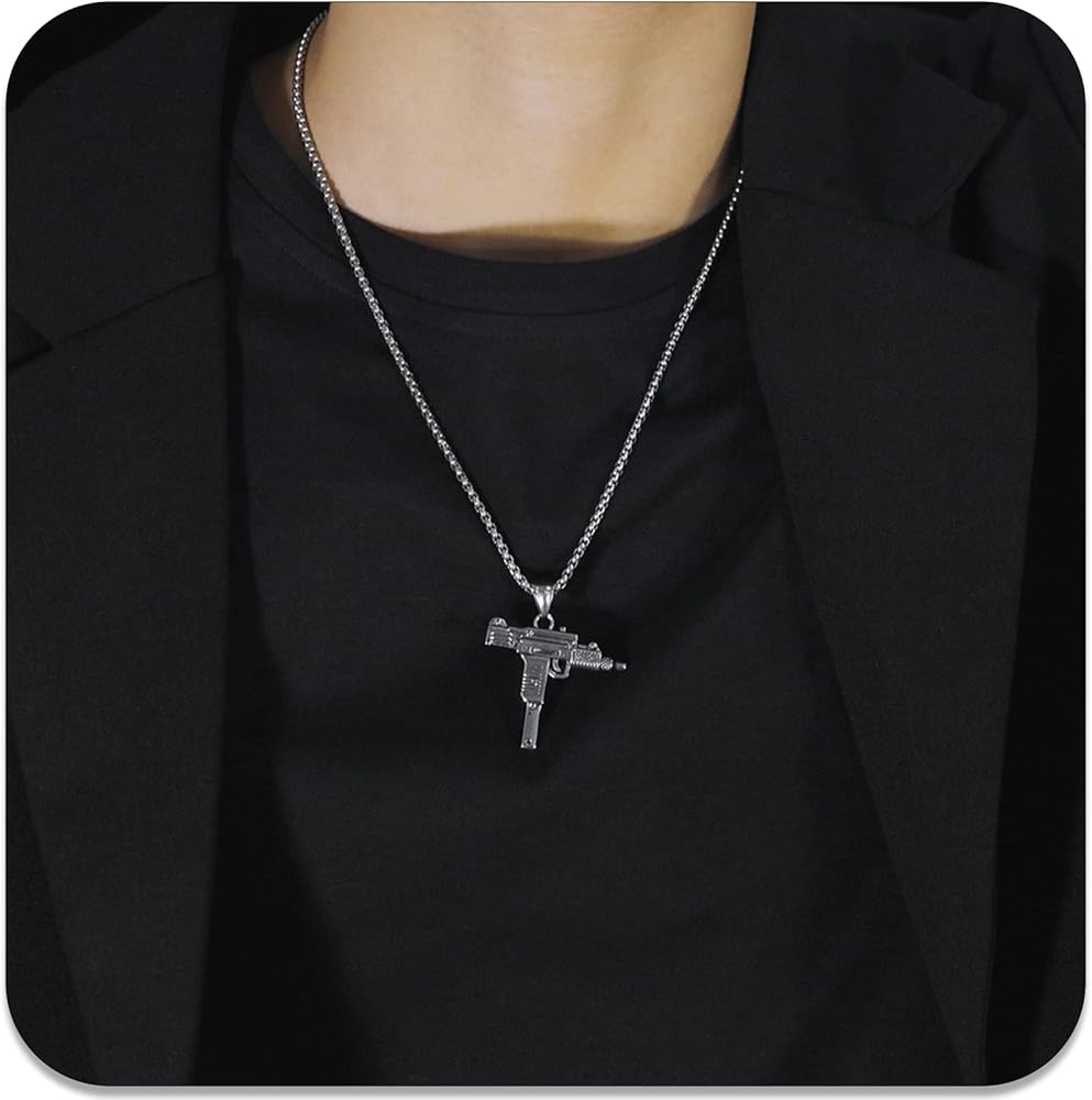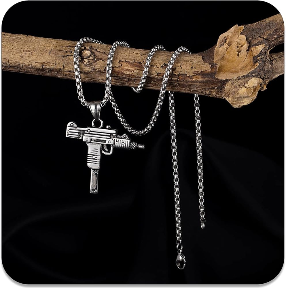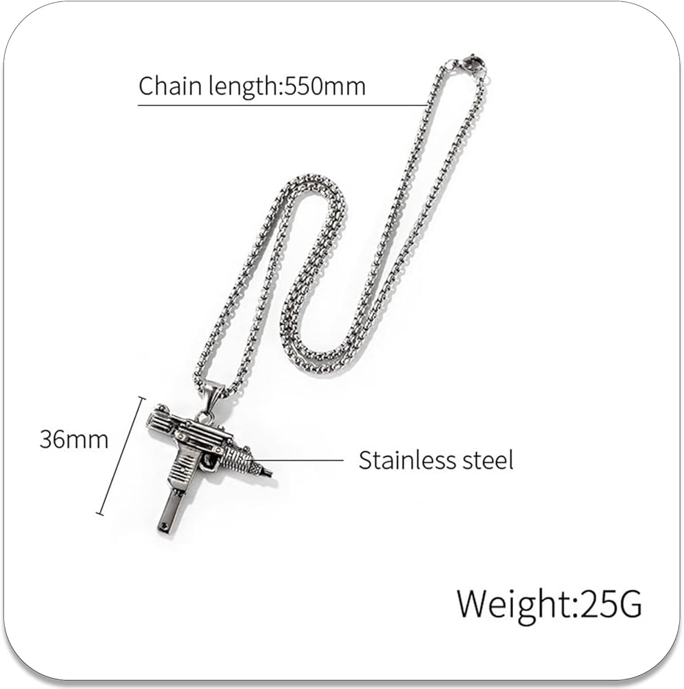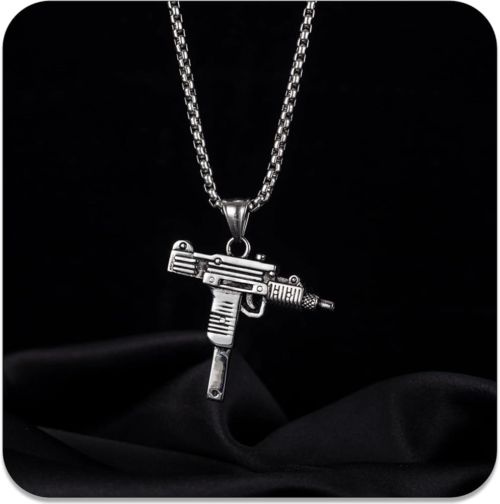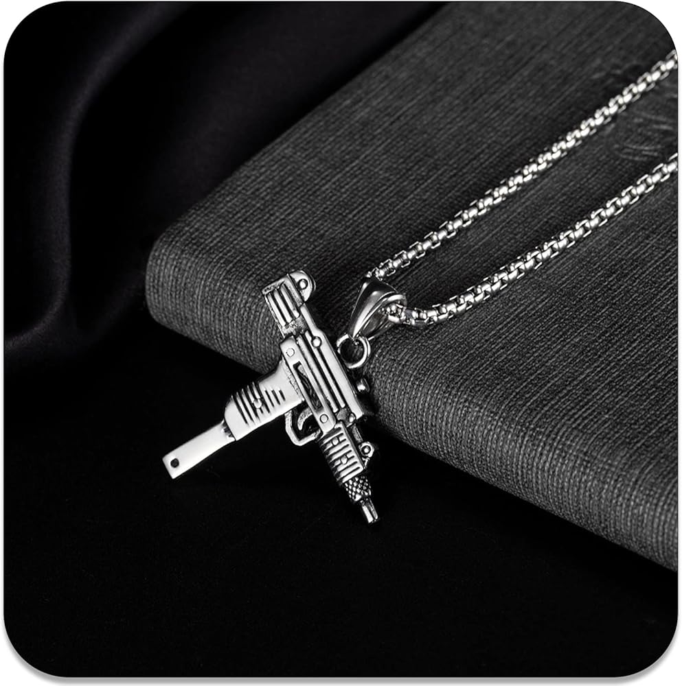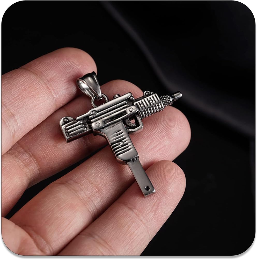 PEAS Punk Jewelry Necklace Stainless Steel Gun Pendant Necklace