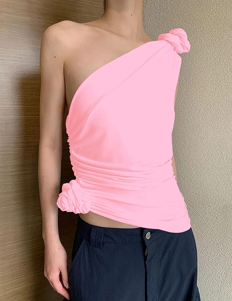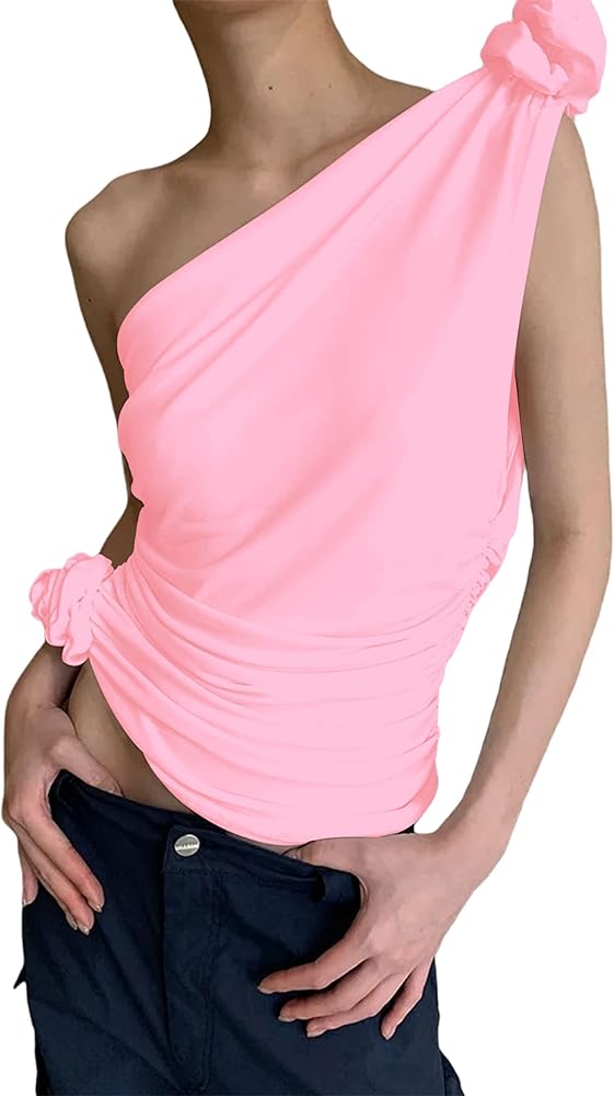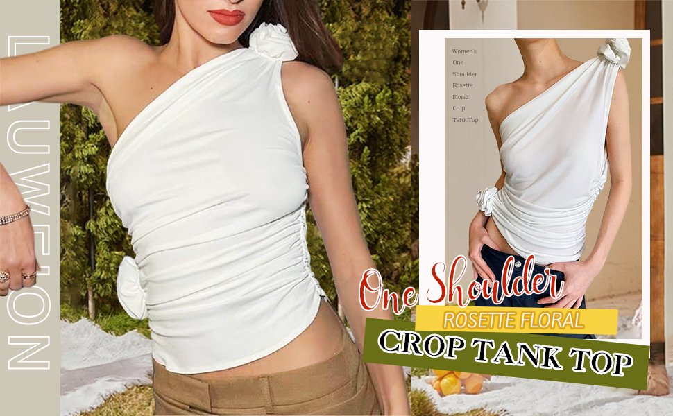 - FEATURE: Rosette floral crop tank top, side ruched tank tops for women, pleated crop top, one shoulder going out tops, ruched rosette top.