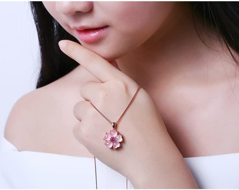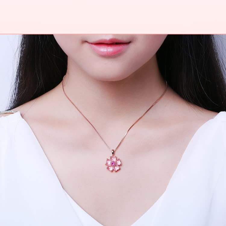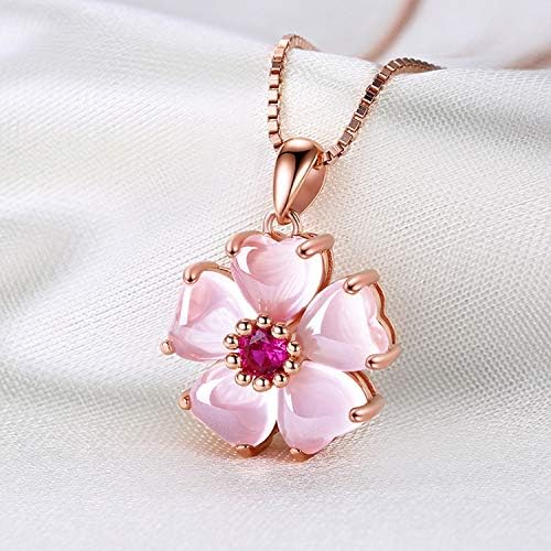 Yocoyee Dainty Cherry Blossoms Necklace Graduation Flower Gemstome Pink Love Heart Beautiful Artificial Stone Crystal Rose Gold Necklace Best Gifts for Women Friends Lover