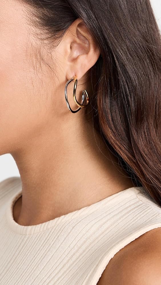 By Adina Eden Women's Two Tone Squiggly Hoop Earrings