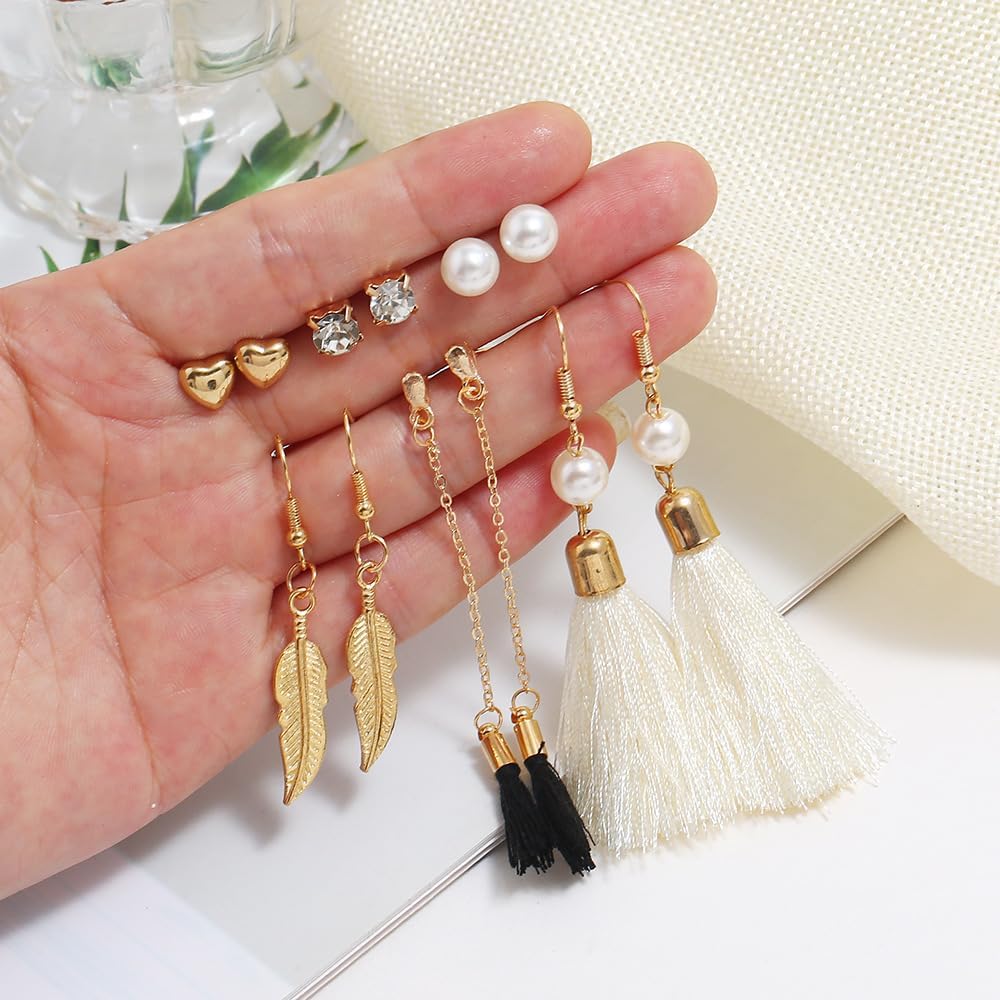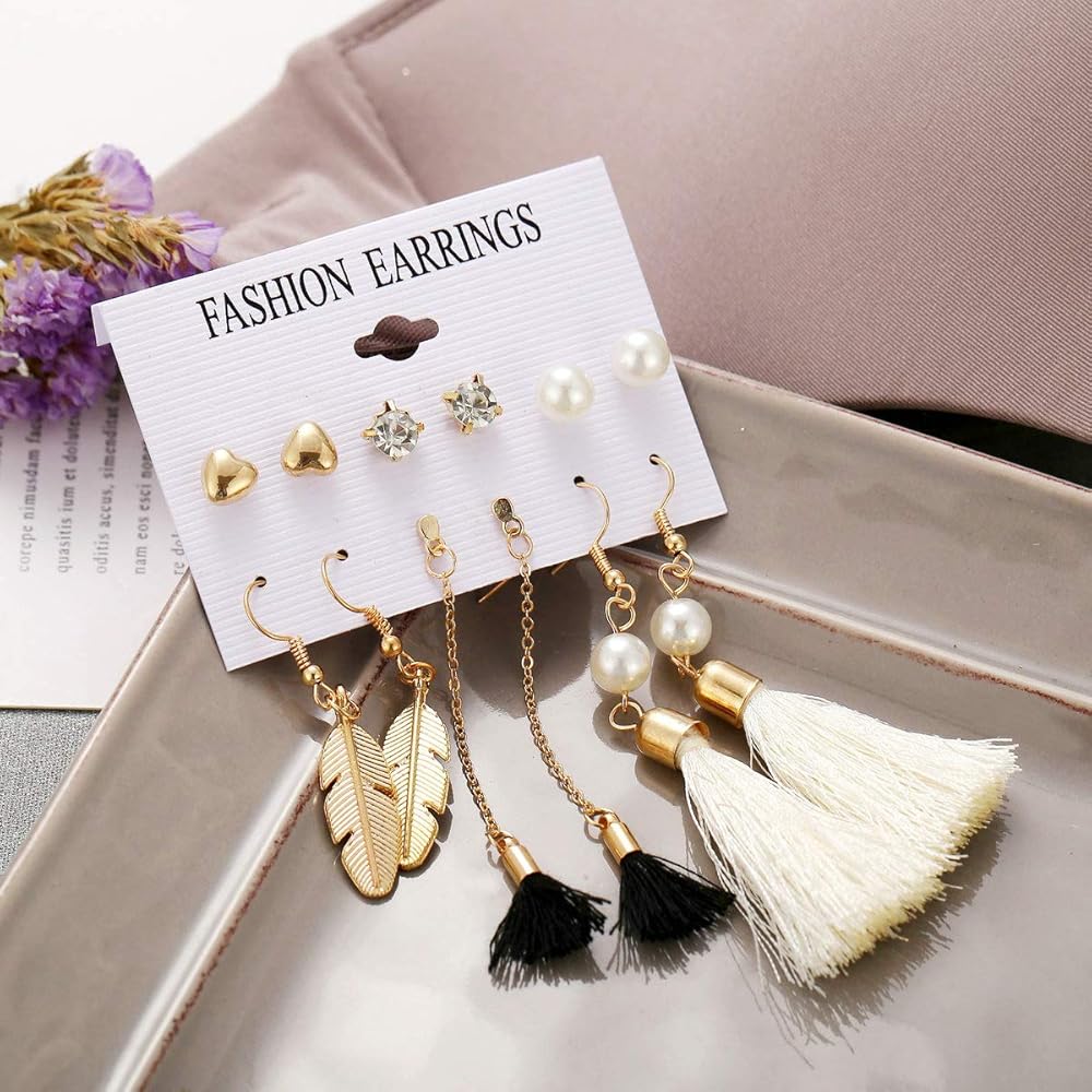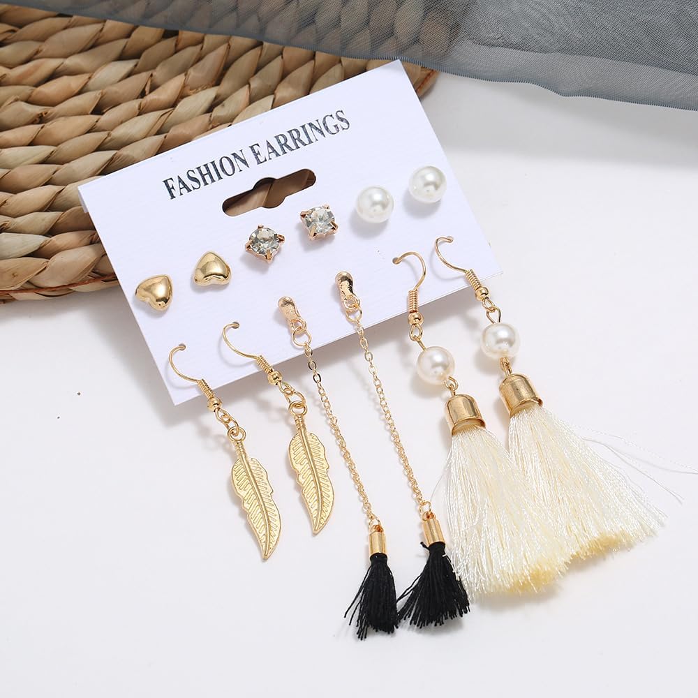 6 pairs of assorted shapes of earrings, Tassel Drop Hoop Earrings.