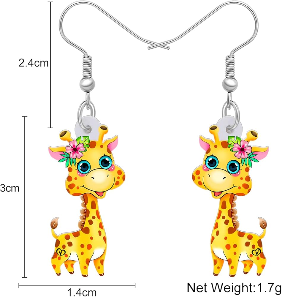 The giraffe earrings are made of acrylic material with smooth surface, durable and not easy to fade. Stainless steel ear hooks are lightweight, hypoallergenic and comfortable to wear.