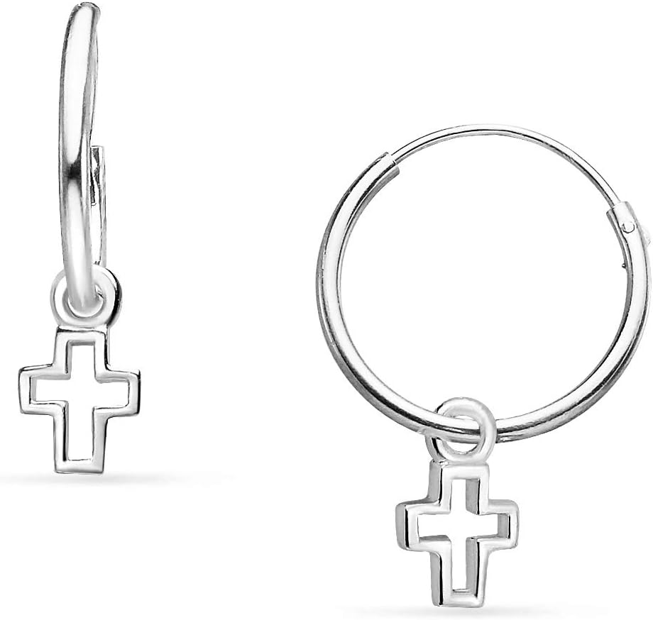 Don't wait to order Click Add-to-Cart to order your sterling silver endless hoop earrings with a cross charm design today!