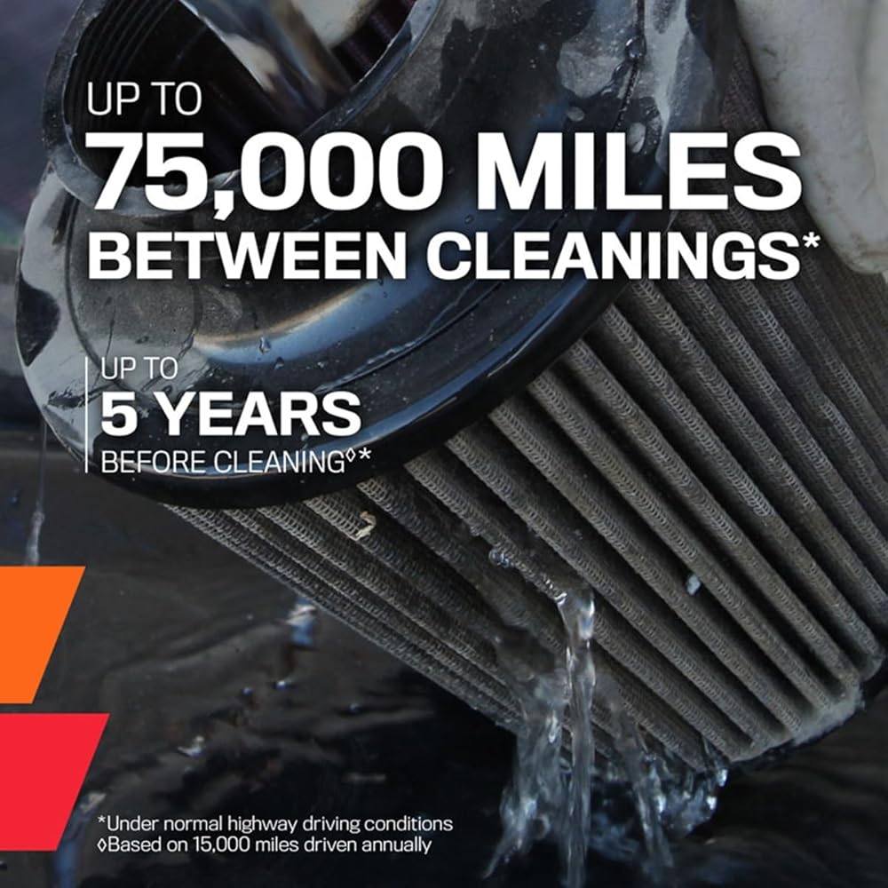 ENGINEERED POWER: State-of-the-art filtration media provides up to 50% more airflow than disposable paper filters to increase power and acceleration- clogged or dirty engine air filters can reduce your vehicle's acceleration by up to 10%