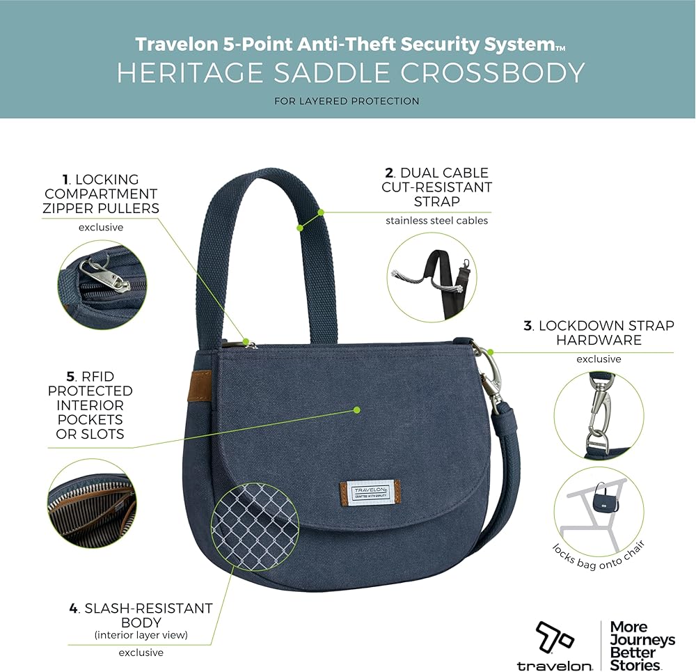 5-POINT ANTI-THEFT SECURITY SYSTEM built in and features: slash-resistant body and straps; locking compartments; lock-down hardware and RFID Blocking technology – ideal for travel.
