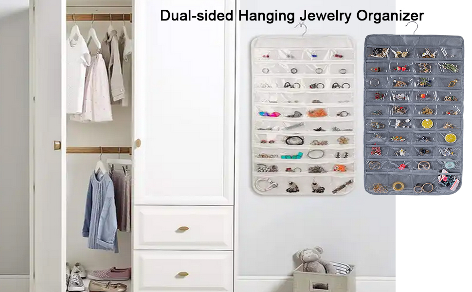【Hanging Jewelry Organizer】Jewelry storage bag with hooker can be hung in the wardrobe, door, wall, closet, cabinet, or anywhere with hooks in the bedroom, hotel, college dorm, RV, camper, cruise trip. Also suitable for travel with foldable design, convenient to store on luggage or suitcase.