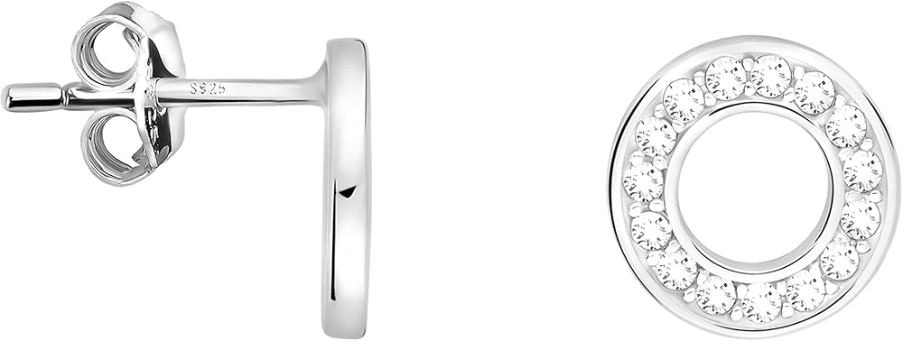 ELEGANT & TIMELESS - Fashionable silver stud earrings with Zirconia stone - circle motif - suitable for any occasion and versatile combinations