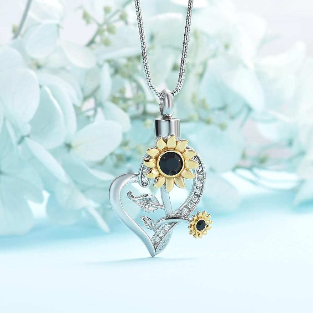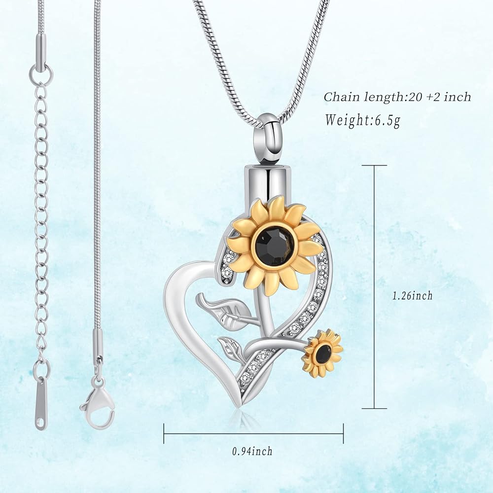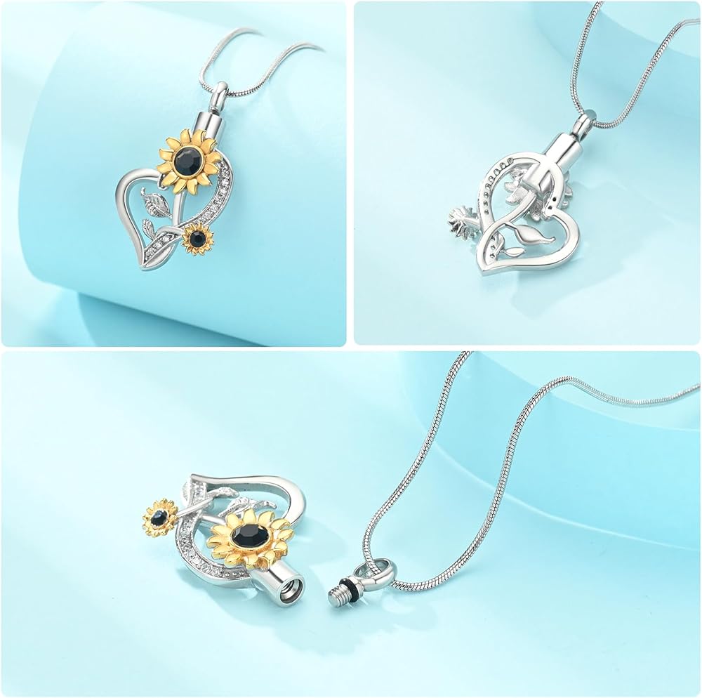 Heart Urn Necklace for Ashes Sunflower Cremation Jewelry for Women Stainless Steel Memorial Necklaces Ash Holder for Human Pets Keepsake Jewelry for Loved Ones with Fill Tool