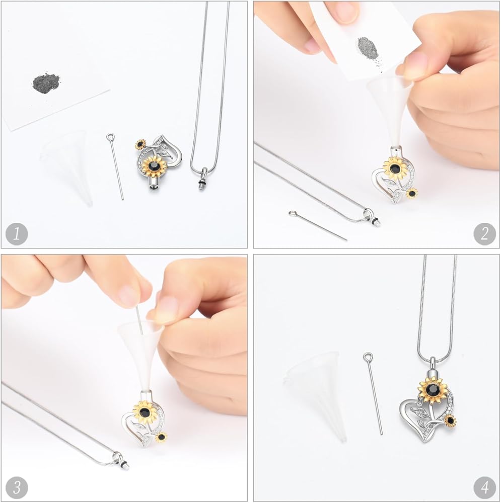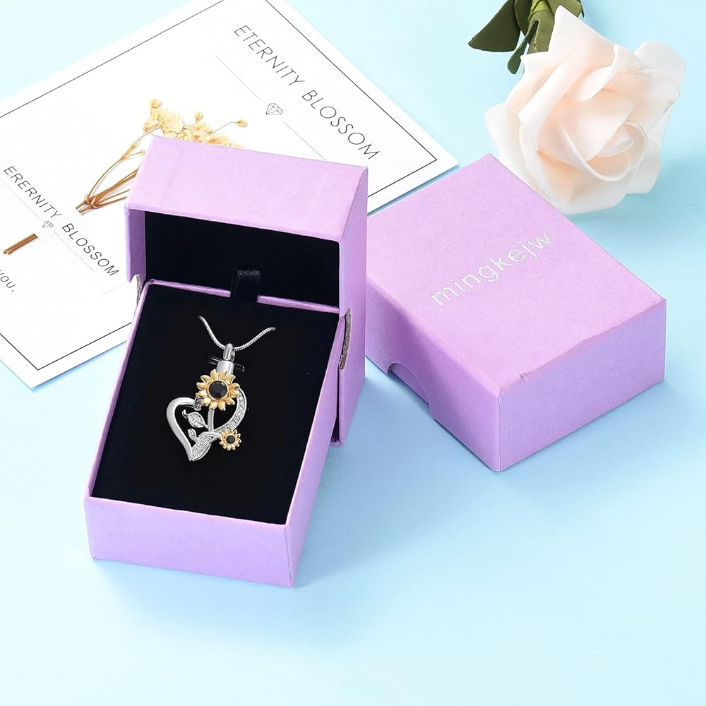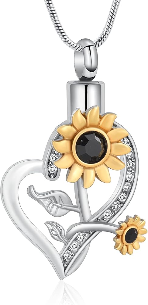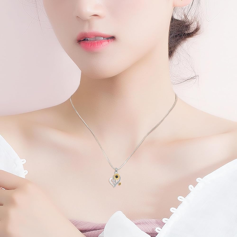 Heart Urn Necklace for Ashes Sunflower Cremation Jewelry for Women Stainless Steel Memorial Necklaces Ash Holder for Human Pets Keepsake Jewelry for Loved Ones with Fill Tool
