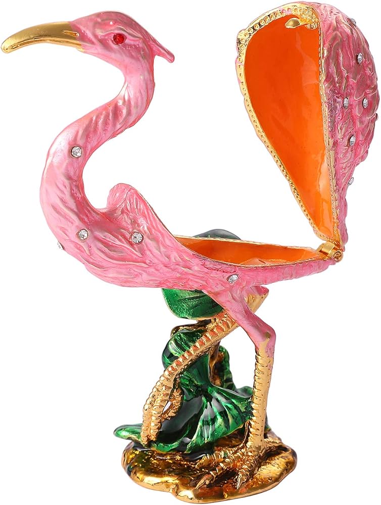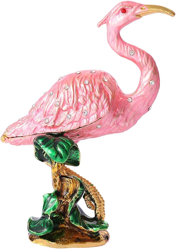 QIFU Vintage Hand Painted Egret Figurine Hinged Jewelry Trinket Box with Rich Enamel and Sparkling Rhinestones