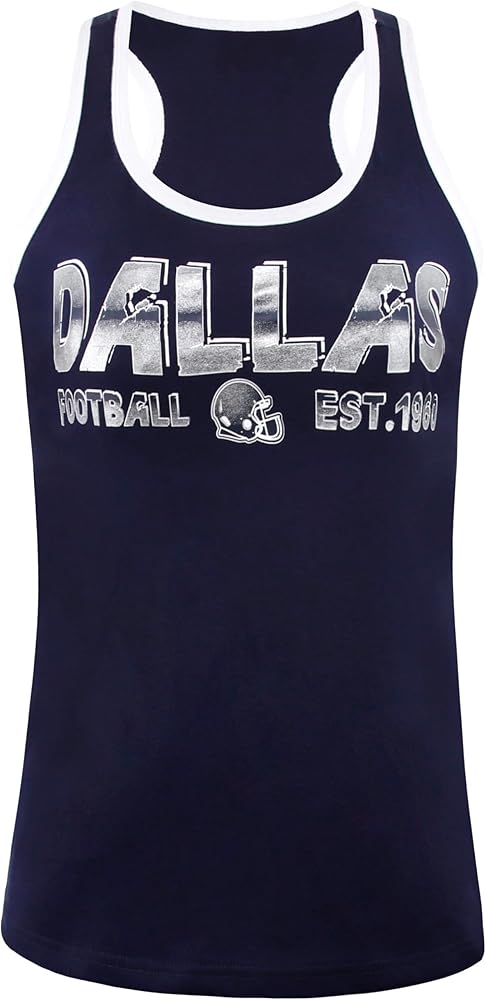 Women City Football Fans Athletic Sporty Vest Tank Tops Shirts - Navy & White