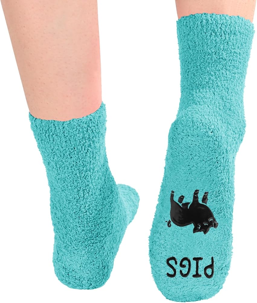 SIZE & MATERIAL: Designed to fit women's shoe sizes 6-10. These fluffy socks are made of plush coral fleece, providing ultimate comfort and warmth. Our fuzzy socks also feature black non-slip soles, ensuring your safety on wood and tile floors.
