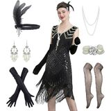 Package include : 1 x 1920S Sequin Flapper Dress , 1 x Pearl Necklace ; 1 x Long Satin Gloves; 1 x Black Holder ; 1 x Headband ; 2 x Earrings.