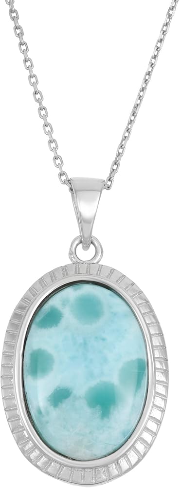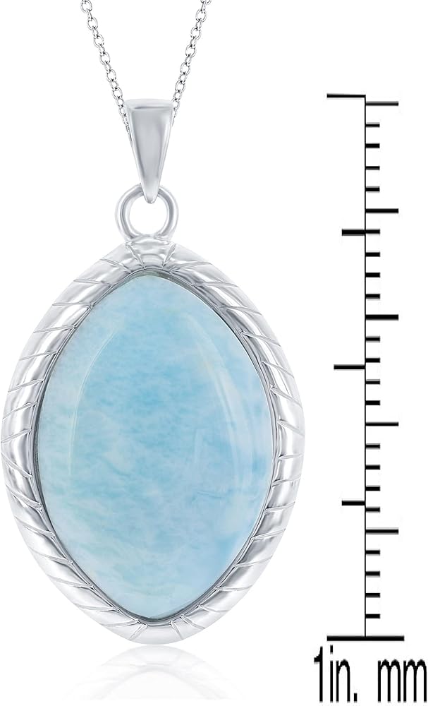 SIMPLY STUNNING with EXQUISITE CRAFTSMANSHIP crafted with high grade natural Larimar stone and sterling silver this pendant necklace perfectly combines the modern and vintage look. the attention to detail and beautiful workmanship make the necklace a stunning and unique jewelry piece. Comes with an 18-inch Italian diamond-cut sparkling silver chain which secures with a spring ring clasp