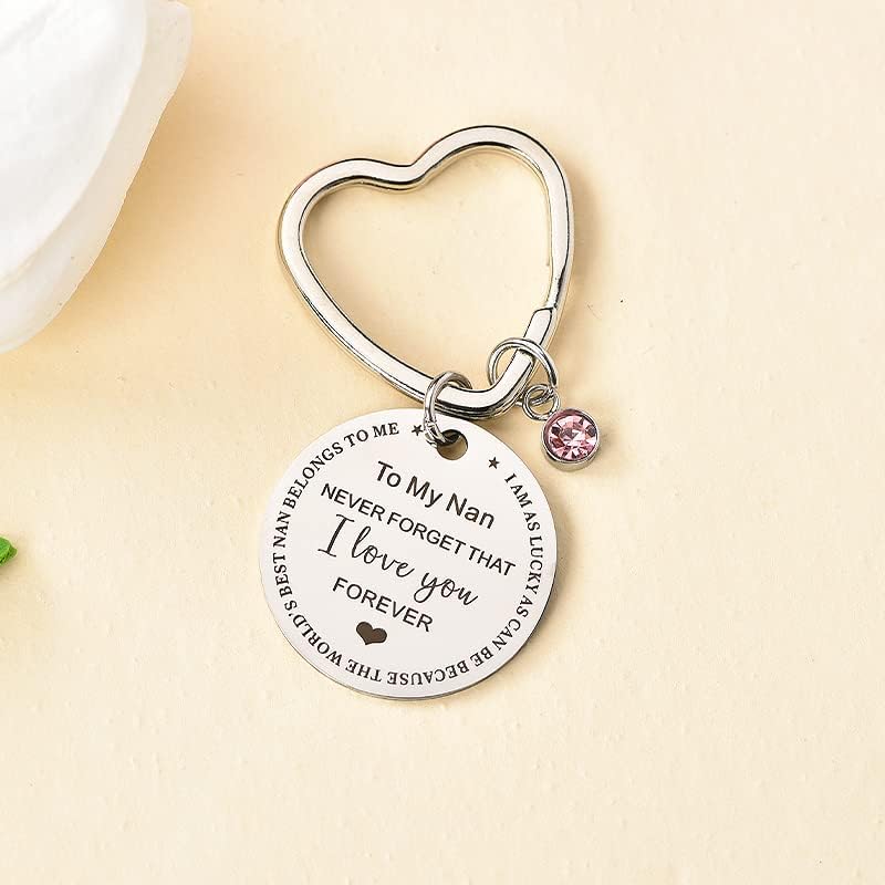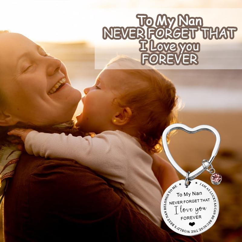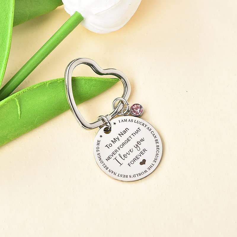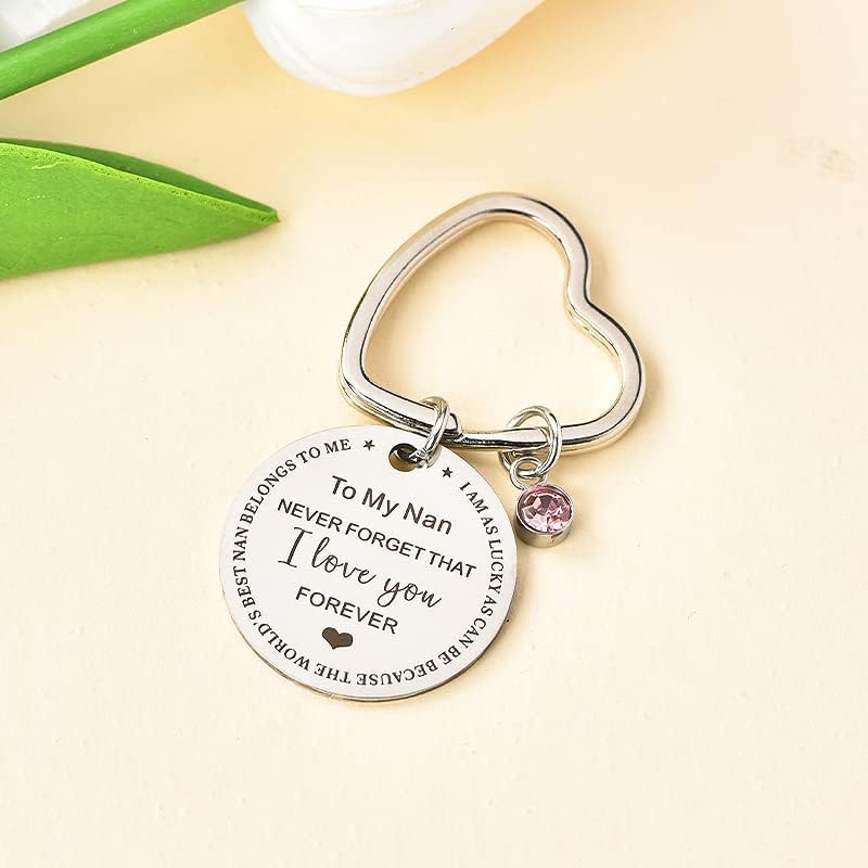Best Nan Grandma Gift ideas from Grandchildren: This nan key chain is a best gift for grandma, and the nana keychains engraved with “to my nan never forget that I love you forever”, the words on the grandmother keychain gift tells your grandmama how much you love her and she will be very happy when she receives this mothers day keyring gift for nanny, because it was a sweet gift for mimi gigi from granddaughter grandson, best nan gifts for birthday christmas mother's day