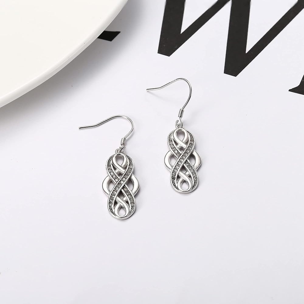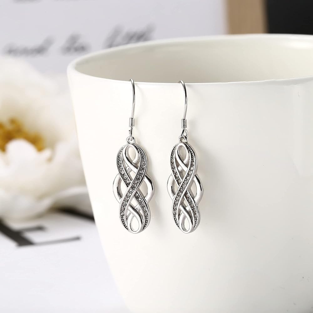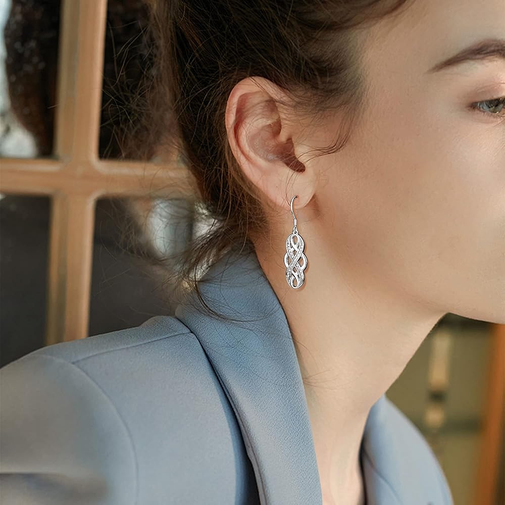💝CELTIC KNOT DANGLE EARRINGS MATERIAL💝The dangle earrings are made of 925 sterling silver inlaid with zirconia. The tone of the earrings is platinum and rose gold plated. The infinity dangle earrings of the material which is hypoallergenic, nickel-free, lead-free, and cadmium-free for sensitive ear. "S925" sterling silver stamp as a symbol of guaranteed product quality