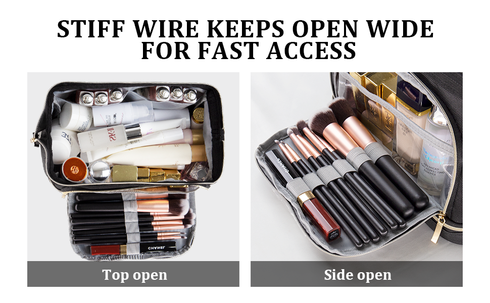 ✨【TWO WAYS OPEN】– This make up bag have two ways open, It's easy to store small items, makeup brush, to make your daily make-up, cream, lipstick, perfume and other beauty things organized and protected;
