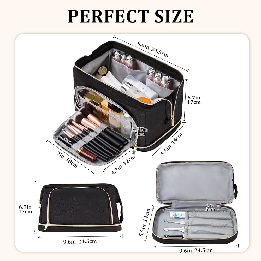 ✨【 LARGE CAPACITY 】- 9.4 x 5.1 x 6.2 inch. makeup travel bag is large enough for your 5-7 days travelling or daily use. The spacious makeup organizer bag can hold your full-sized cosmetics, make up tools, toiletries, or travel essentials;