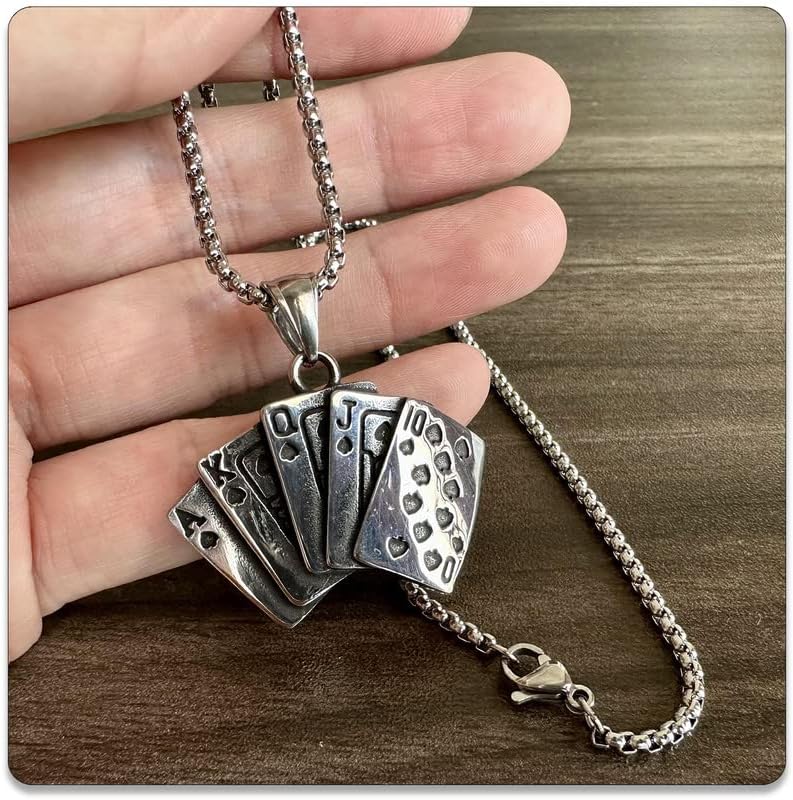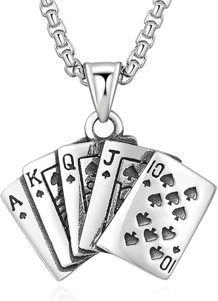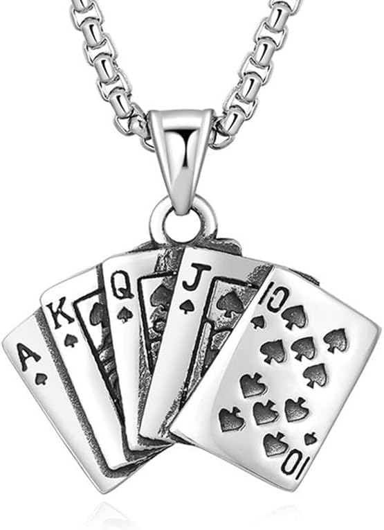 PEAS Punk Jewelry Necklace Stainless Steel Flush Poker Pendant Ace of Spade Necklace