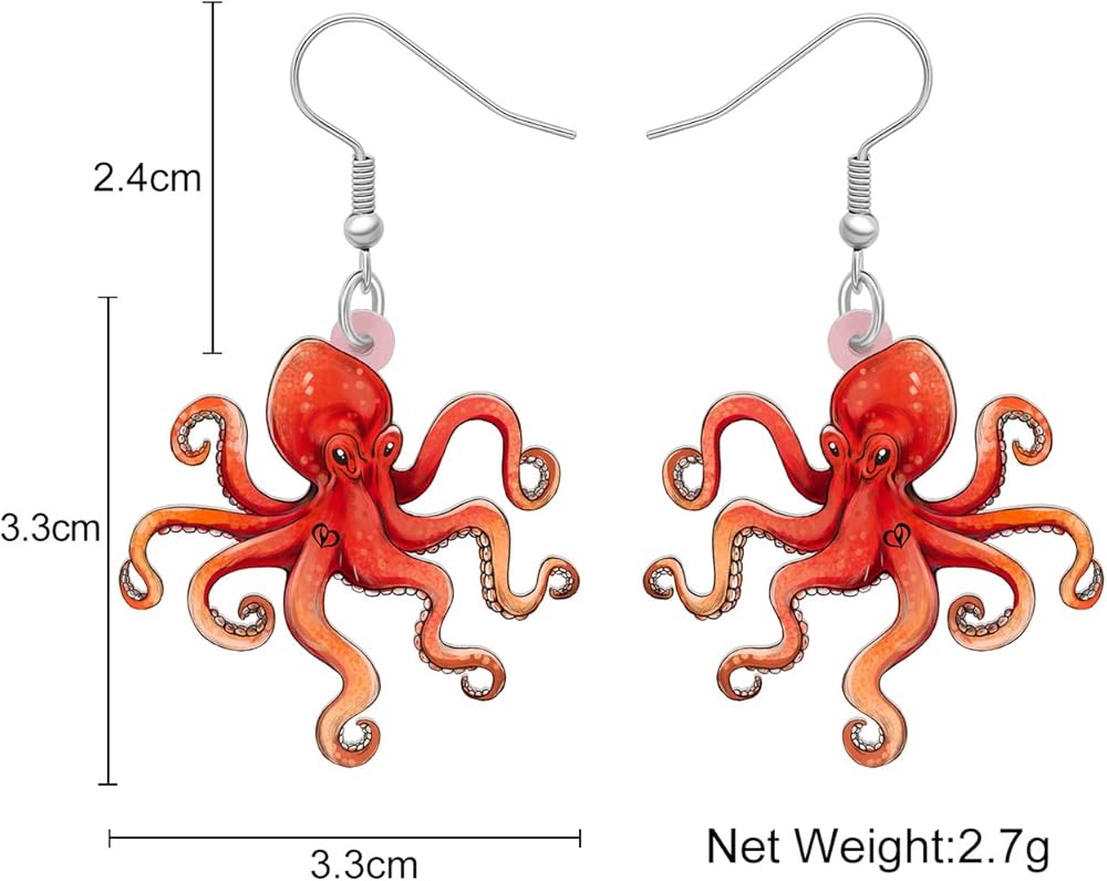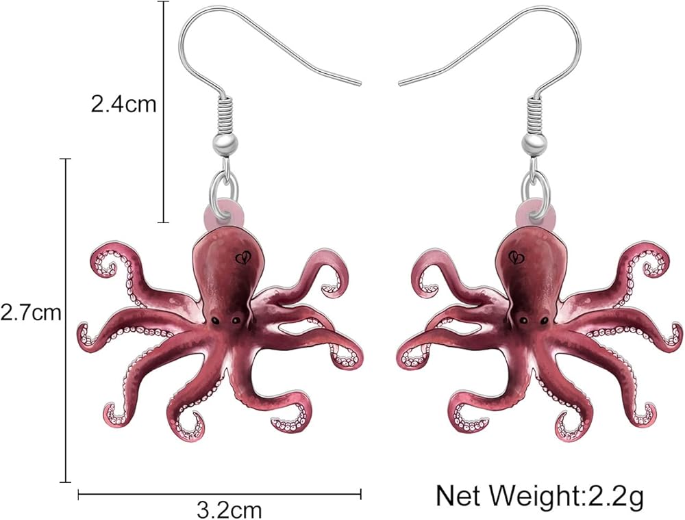 Original design and produced by BAMAY Jewelry, adorable octopus earrings for sea life lovers. Appropriate celebration presents for Mother's Day, Christmas, Valentine's Day, Halloween, spring, summer holiday, St Patrick's Day, anniversary, party and birthday. Give exquisite gifts for yourself, loved ones, wife, family and girlfriends. We pride best service to our customers and do our great effort to satisfy customers, feel free to contact us if you have any questions.