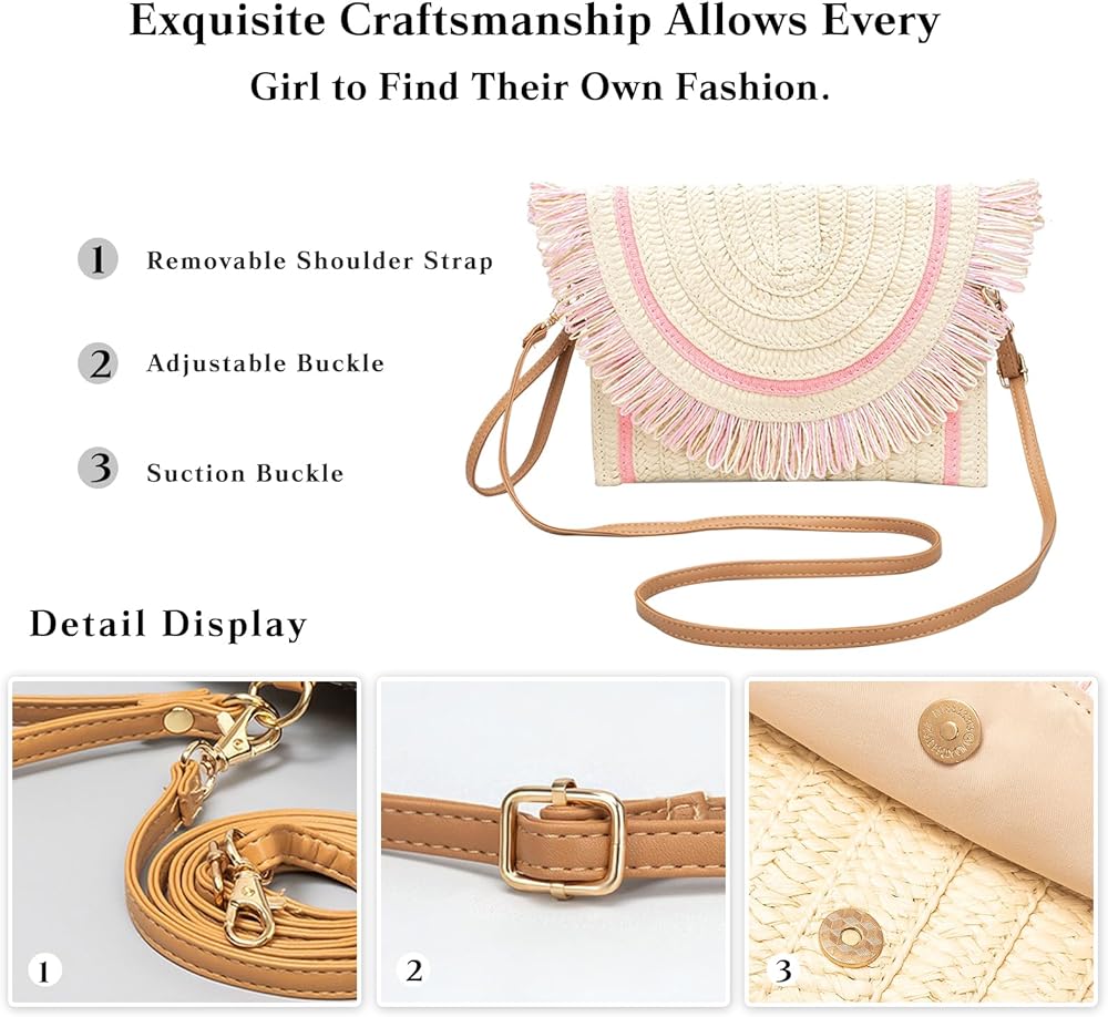 ➤Made of natural straw fiber, exquisite straw surface, delicate polyester lining with durable buckle design, unique and chic.