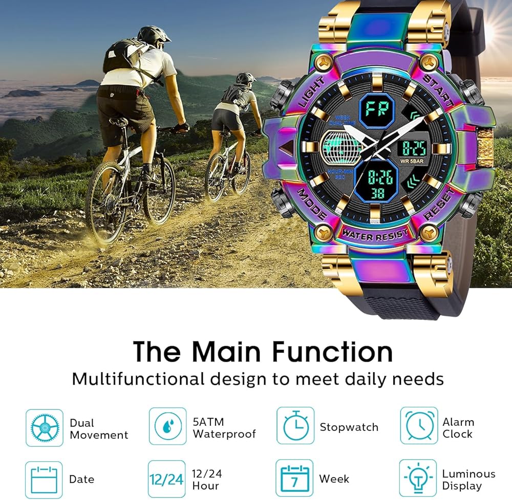 COMFORT with FASHION: Silicon rubber watch band with the large dual dial design make it comfortable to wear and lead you to edge sport fashion. Perfect for both indoor and outdoor activities