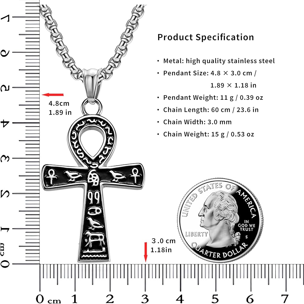 SPECIFICATIONS: High-Grade 316L Stainless Steel, 24 inches, Ankh Cross Pendent 1.88*1.14 inch, Product Weight 26g / 0.92oz.