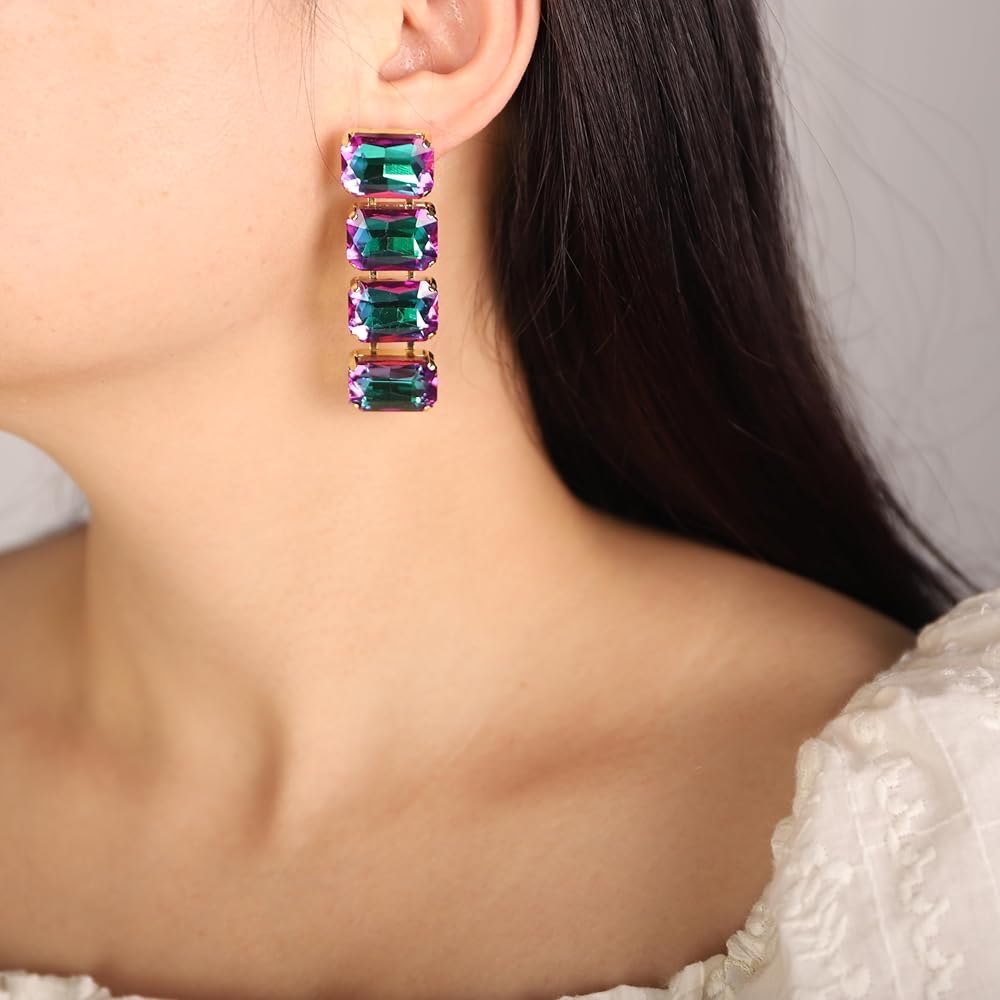 Multi Glass Drill Dangle Earrings Rhinestone Vintage Dangle Earrings for Prom Party for Women and Girls.
