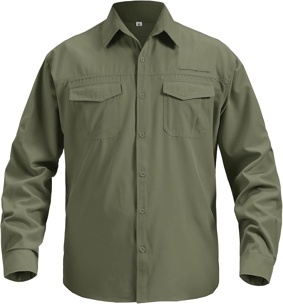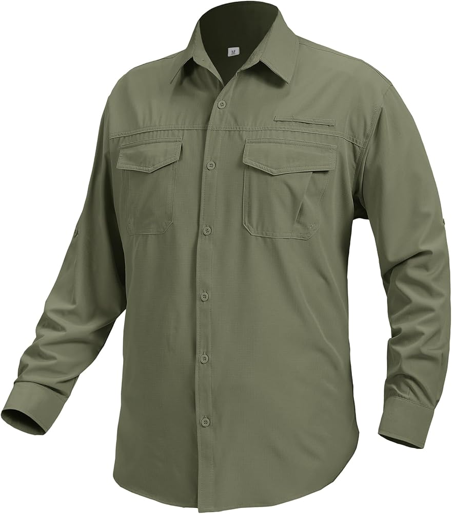 With a modern classic casual fit, Men's long sleeve fishing shirts features two chest pockets with closure and one sunglasses hanger loop for convenient storing.