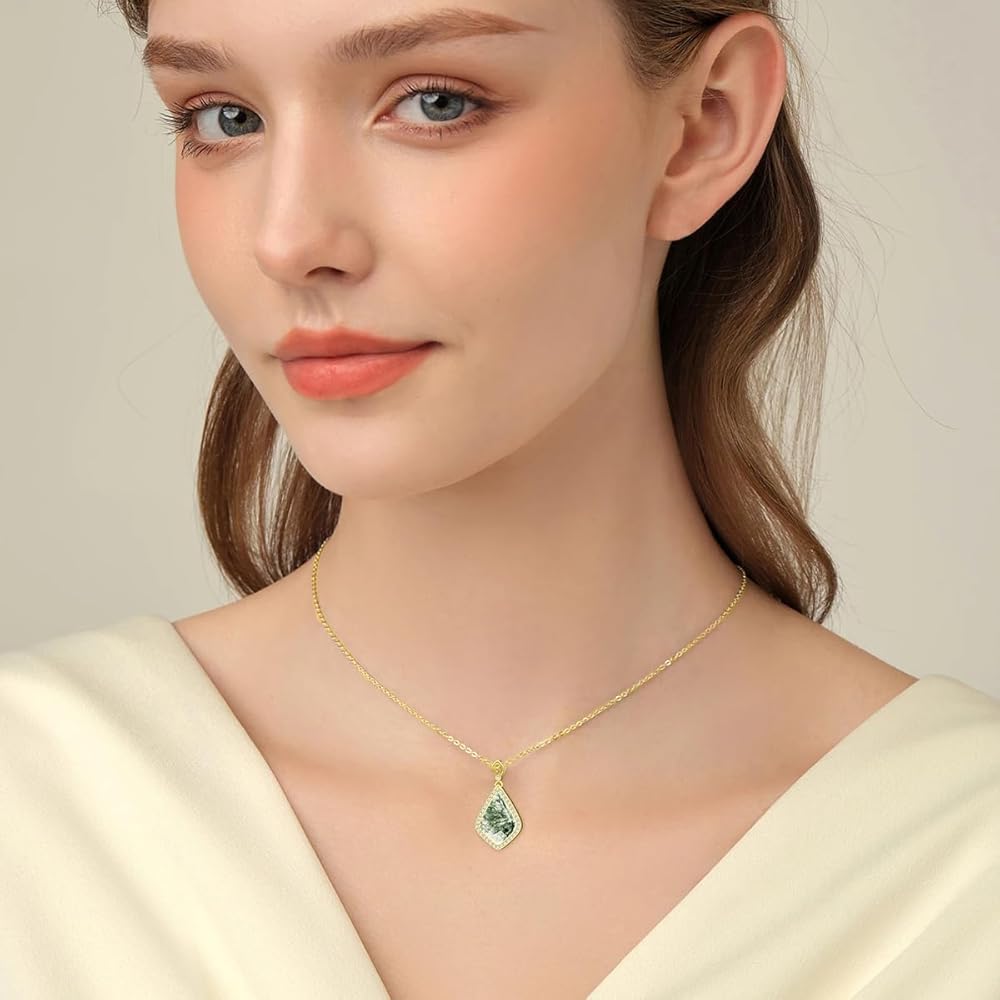 【Perfect Gift】This moss agate necklace is noble and elegant, it can be used as a birthday gift, anniversary gift, graduation gift, Valentine's Day gift, etc. It is very suitable for mothers, wives, girlfriends, female friends to express your love.