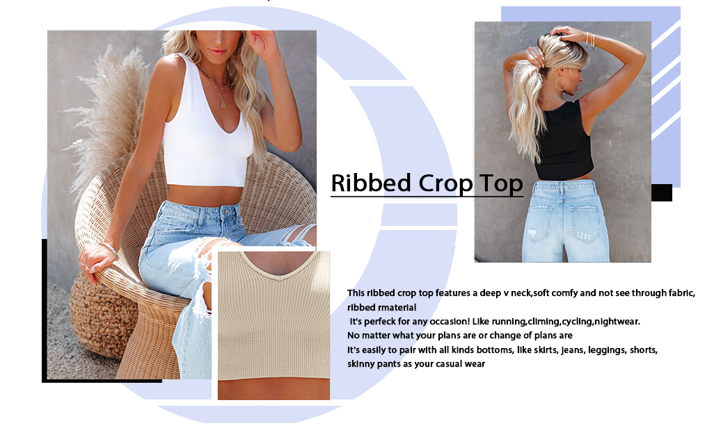 Occasions: Crop tops for women sexy with casual basic style, womens v neck crop tops great for daily wear, night out tops, party tops, club tops, bar, vacation, street, beach and workout tank tops; Tank top is a sexy top in summer and can be used as a basic crop top in spring, fall and winter