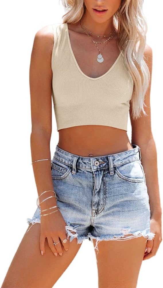 Style: Ribbed tank top for women uses a deep plunge v neck design to make this going out tops for women sexy casual, stretchy form-fitting rib material to hug your body, basic sleeveless crop tops for teen girls and women, plain womens tank tops, solid color and soft touching, cute tops for women summer casual wear