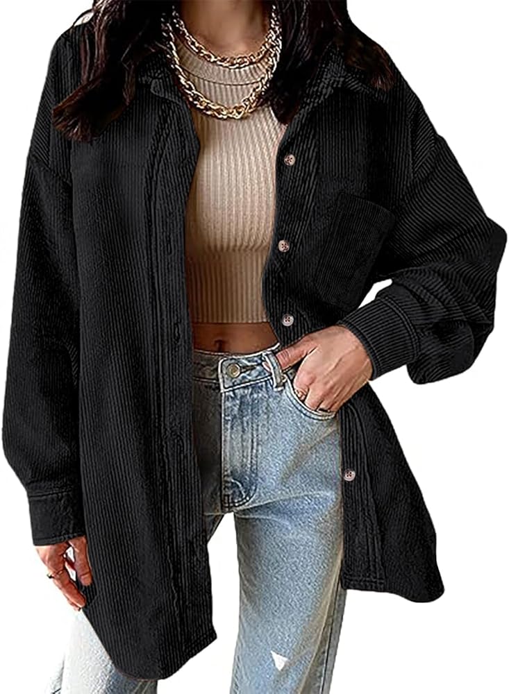 Function: Women's button down shirt,solid color corduroy, elegant button down shirt, Loose fit, Collared Shirt Jacket Tops,long sleeve shirt for women, Casual Loose Fit Collared button down shirt, v neck, corduroy Collared Shirt, autumn and winter pocket shirt.This is also a casual travel top, because it is a loose style and will not bring constraints.